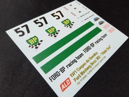 1971 COUPES DU BENELUX, ZANDVOORT #57 FORD MUSTANG BOSS "ALAIN DEX" 1:43, 1:24 DECALS