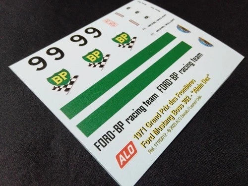 1971 GRAND PRIX DES FRONTIERES, CHIMAY #99 FORD MUSTANG BOSS "ALAIN DEX" 1:43, 1:24 DECALS