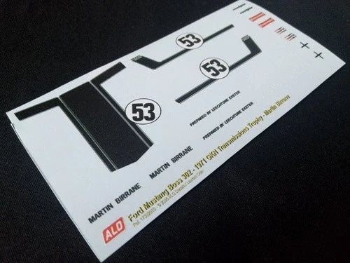 1971 INTERNATIONAL TROPHY, SILVERSTONE #53 FORD MUSTANG BOSS MARTIN BIRRANE 1:43, 1:24 DECALS