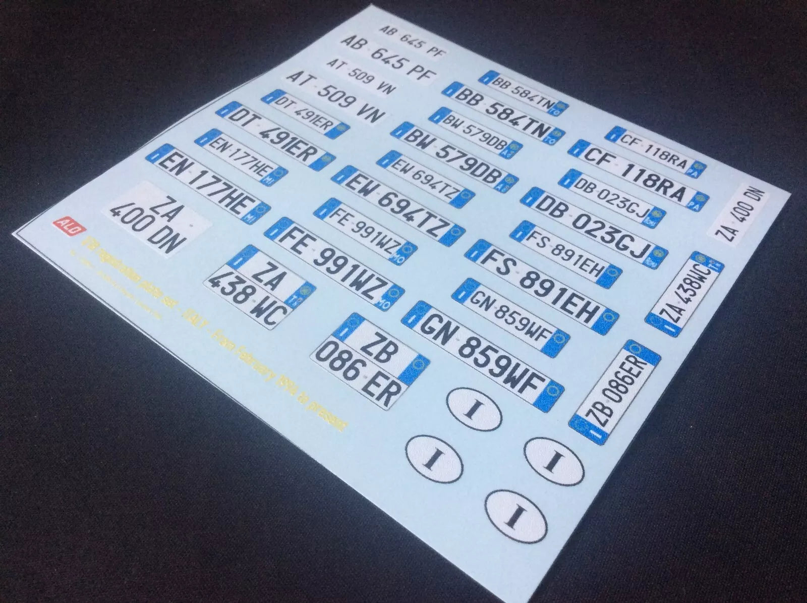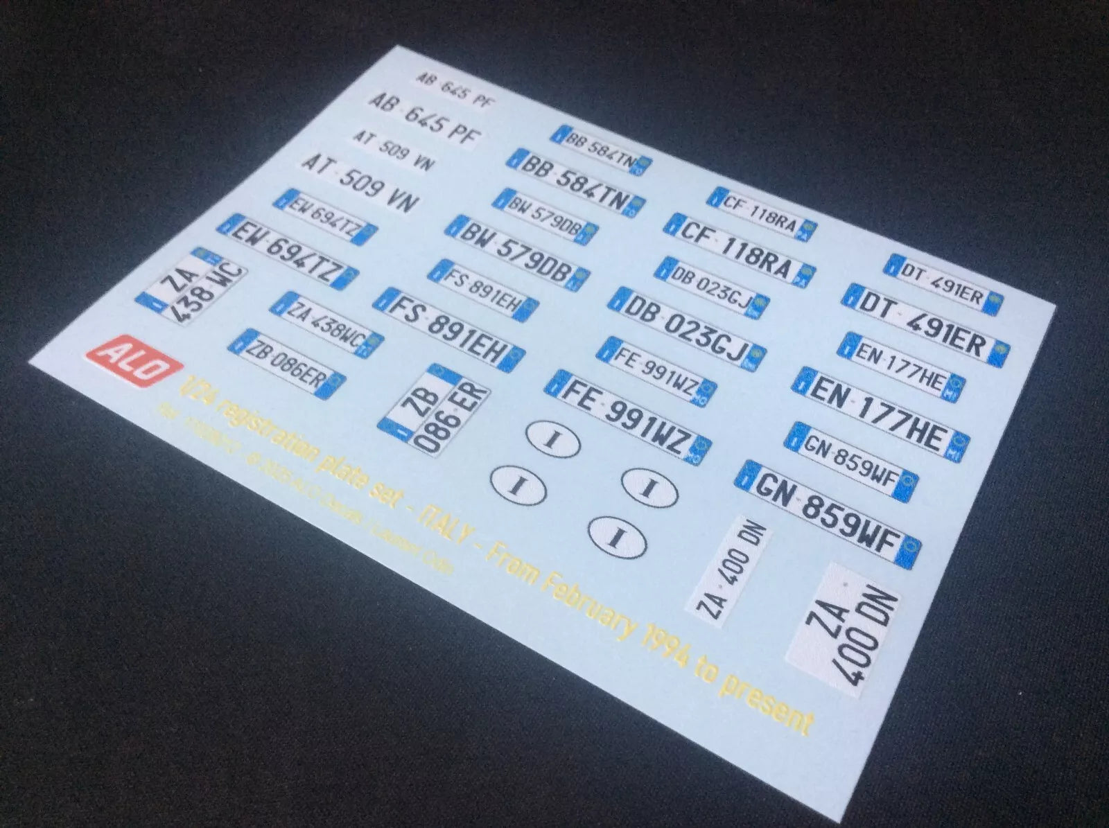 1994-PRESENT ITALIAN REGISTRATION PLATES 1:87, 1:43, 1:24, 1:18 DECALS - FOR 15 CARS