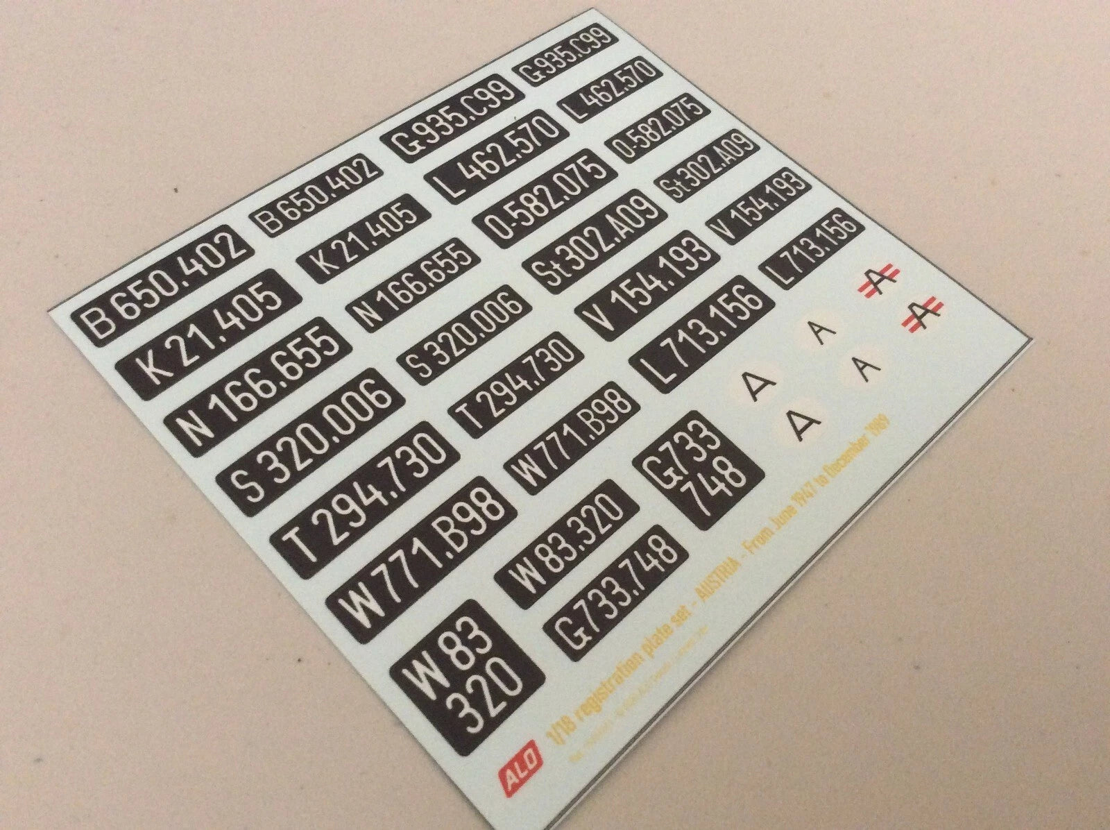 1947-1989 AUSTRIAN REGISTRATION PLATES 1:43, 1:18 DECALS - FOR 14 CARS